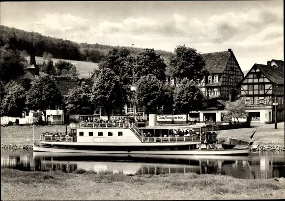 Ak Bodenwerder an der Weser, Dampfer am Anleger vom Kaffeegarten