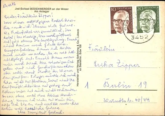 Zustand, siehe Scan, gelaufen, 1972 - ca 15 cm X 11 cm