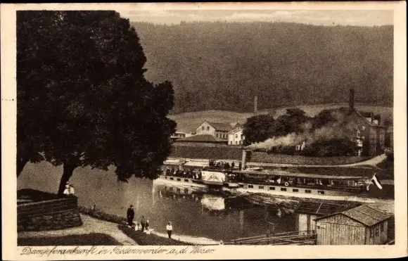 Ak Bodenwerder an der Weser, Dampferankunft an der Anlegestelle