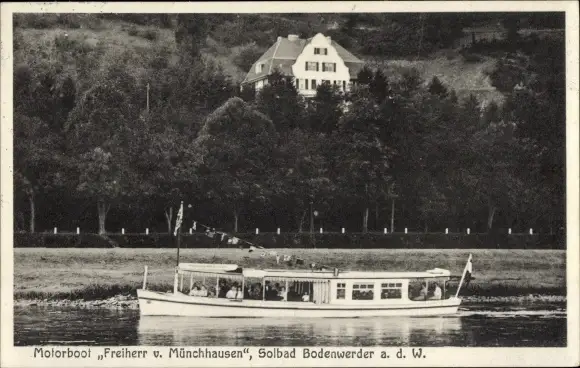 Ak Bodenwerder an der Weser, Motorboot Freiherr von Münchhausen