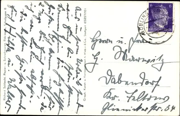 gelaufen 1942, Briefmarke teilweise entfernt, sonst guter Zustand
