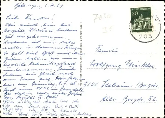 Zustand, siehe Scan, gelaufen, 1969 - ca 15 cm X 11 cm