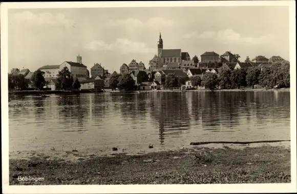 Ak Böblingen in Württemberg, Uferpartie, Blick zum Ort