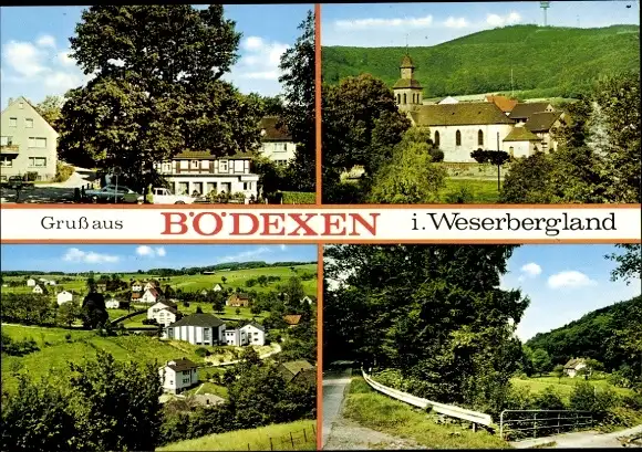Ak Bödexen Höxter im Weserbergland, Kirche, Straßenpartie, Teilansicht