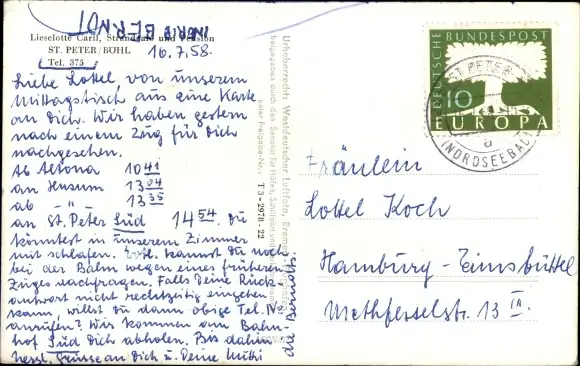 Zustand, siehe Scan, gelaufen, 1958- Bes. C. Caril - ca 14 cm X 9 cm