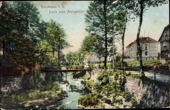 Ak Bogatynia Reichenau Schlesien, Partie beim Amtsgericht