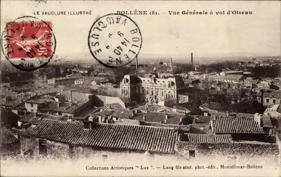 Ak Bollène Vaucluse, Vue Generale a vol d'Oiseau