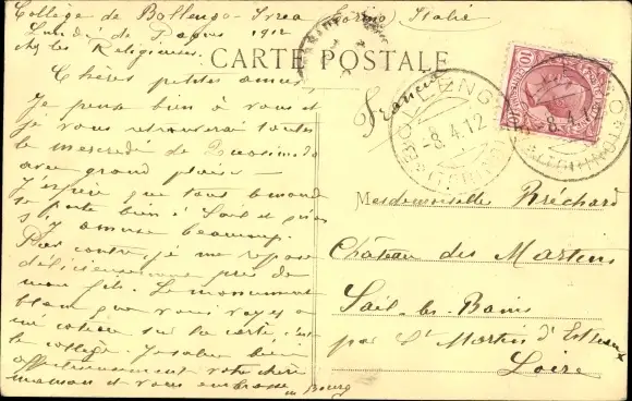Zustand, siehe Scan, gelaufen, 1912 - ca 14 cm X 9 cm