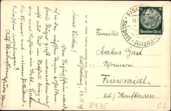 Zustand, siehe Scan, gelaufen, 1939 - ca 14 cm X 9 cm