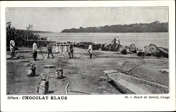 Ak Bomili DR Kongo Zaire, Strand, Boote