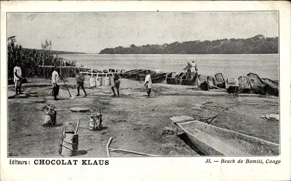 Ak Bomili DR Kongo Zaire, Strand, Boote
