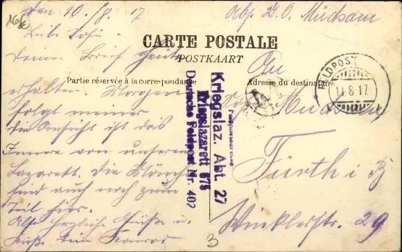 Zustand, siehe Scan, gelaufen, 1917 - ca 14 cm X 9 cm
