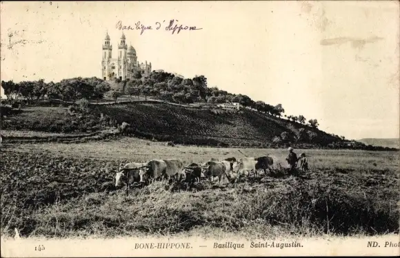 Ak Bone Hippone Algerien, Basilique Saint-Augustin, Rinderherde
