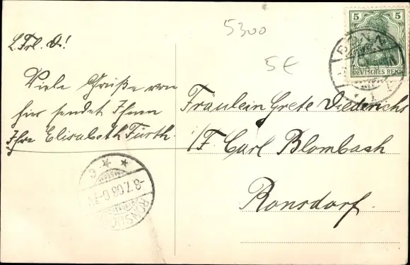 Zustand, siehe Scan, gelaufen, 1908 - ca 14 cm X 9 cm