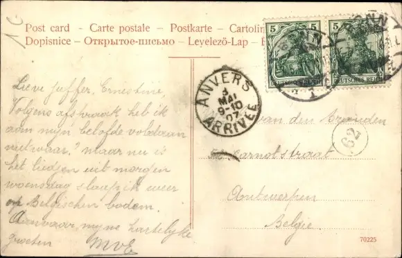 Zustand, siehe Scan, gelaufen, 1907 - ca 14 cm X 9 cm