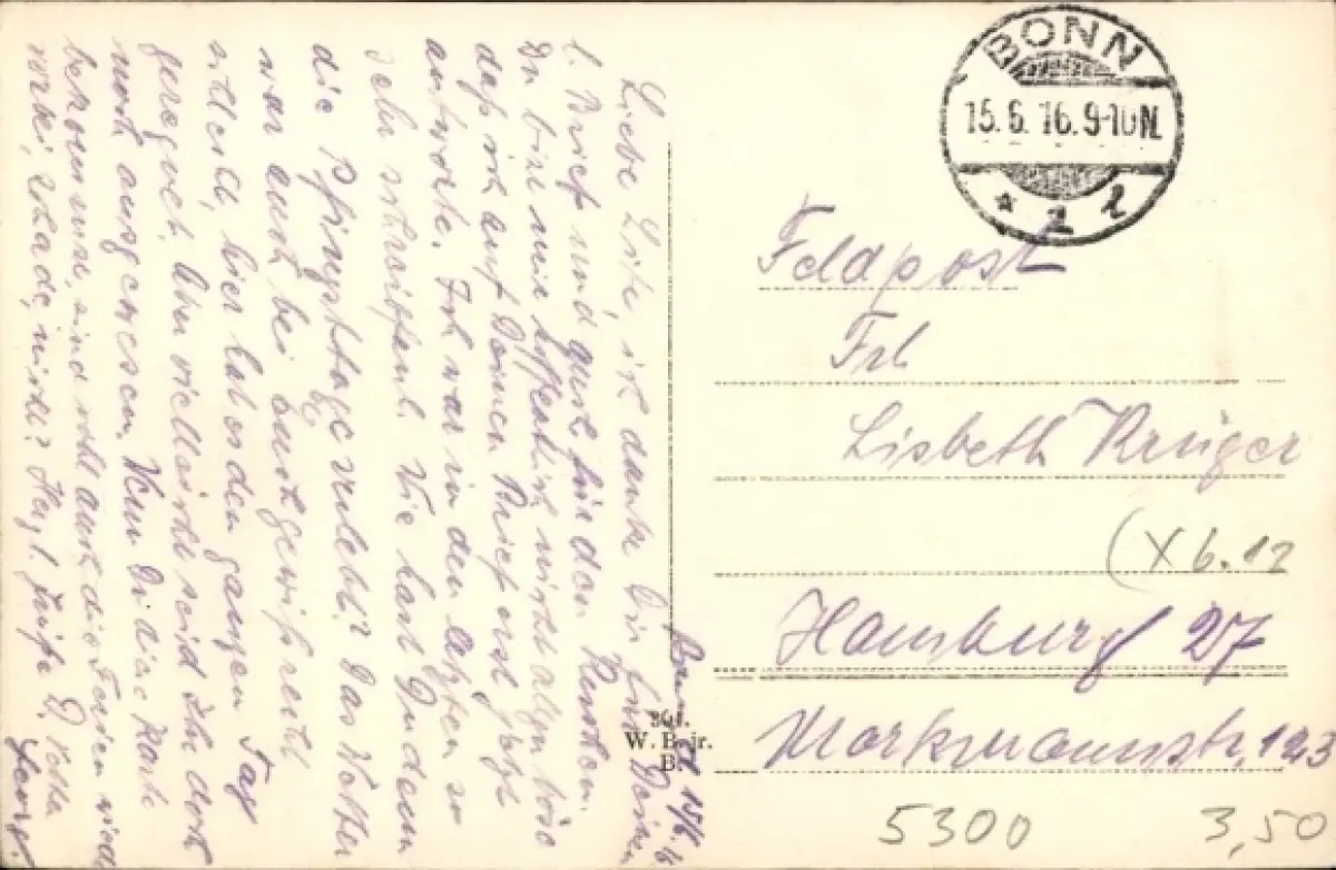 Zustand siehe Scan, gelaufen, 1916 - ca 14 cm X 9 cm