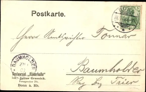 Zustand, siehe Scan, gelaufen, 1903- Inh. Julius Grasnick - ca 14 cm X 9 cm