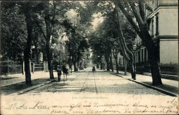 Ak Bonn am Rhein, Koblenzer Straße, Bahngleise, Mann mit Pferd