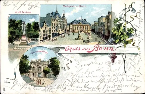 Ak Bonn am Rhein, Koblenzer Tor, Marktplatz, Arndt Denkmal