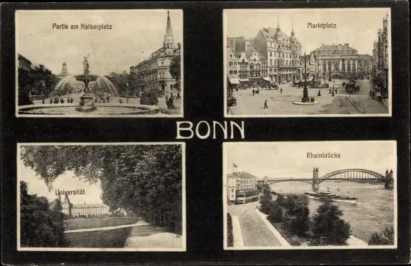Ak Bonn am Rhein, Partie am Kaiserplatz, Marktplatz, Universität, Rheinbrücke