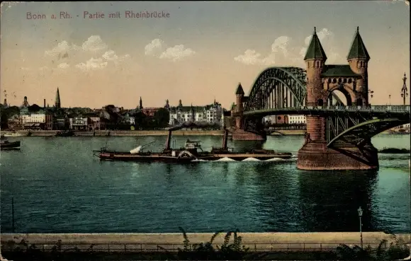 Ak Bonn am Rhein, Rheinbrücke, Raddampfer
