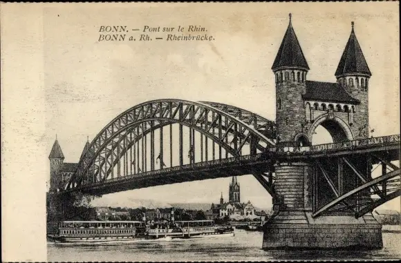 Ak Bonn am Rhein, Rheinbrücke, Salondampfer