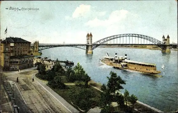 Ak Bonn am Rhein, Rheinbrücke, Schiff