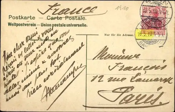 Zustand, siehe Scan, gelaufen, 1910 - ca 5 cm X 3 cm