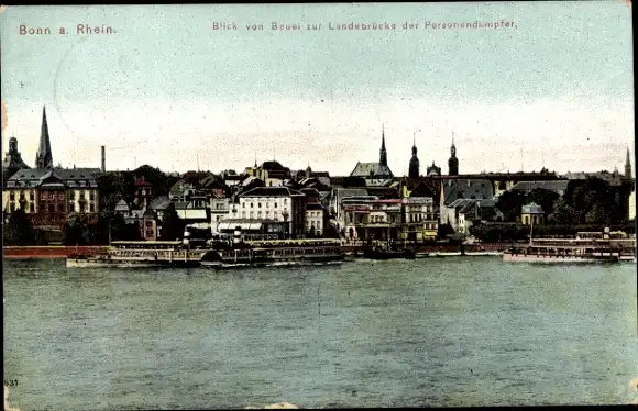 Ak Bonn am Rhein, Teilansicht, Landebrücke Personendampfer, Blick von Beuel