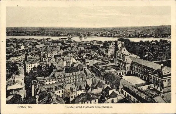 Ak Bonn am Rhein, Totalansicht Ostseite Rheinbrücke