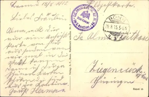 Zustand, siehe Scan, gelaufen, 1915 - ca 14 cm X 9 cm