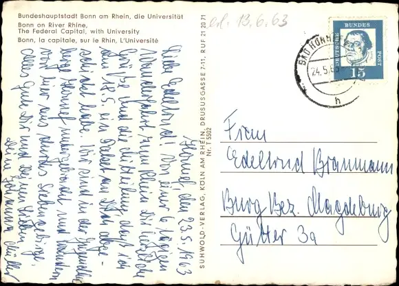 Zustand, siehe Scan, gelaufen, 1963 - ca 15 cm X 11 cm