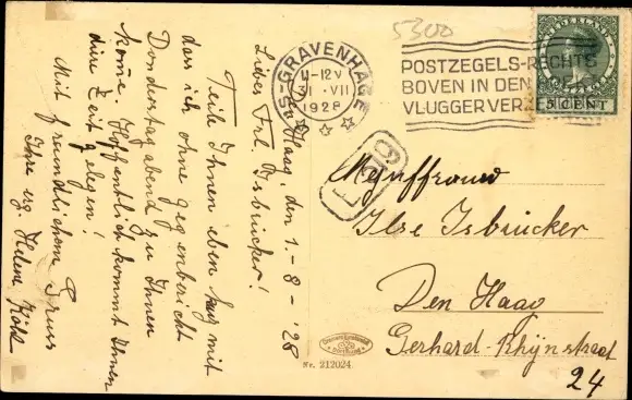 Zustand, siehe Scan, gelaufen, 1928 - ca 14 cm X 9 cm