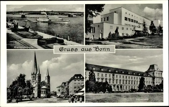 Ak Bonn am Rhein, Universität, Münster, Rheinpromenade, Bundeshaus