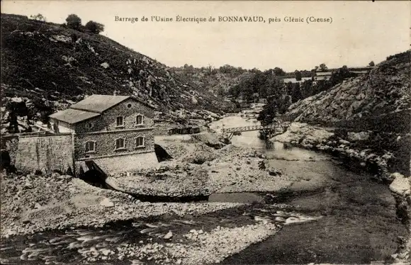 Ak Bonnavaud Creuse, Staudamm der Elektrofabrik