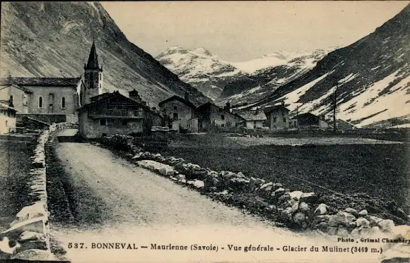 Ak Bonneval Savoie, Maurienne, Vue generale, Glacier du Mulinet