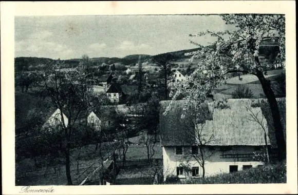 Ak Bonnewitz Pirna in Sachsen, Ortsansicht, Wohnhäuser, Blühender Baum