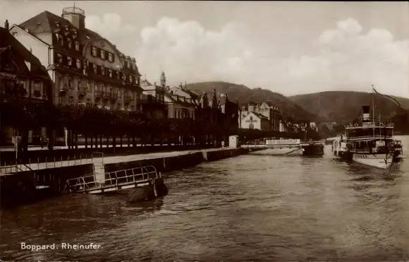 Ak Boppard am Rhein, Rheinufer, Dampfer