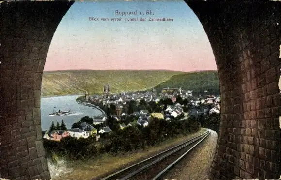 Ak Boppard am Rhein, Totalansicht, Blick vom ersten Tunnel der Zahnradbahn