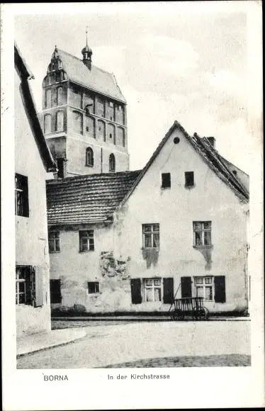 Ak Borna im Kreis Leipzig, In der Kirchstraße, Kirchturm