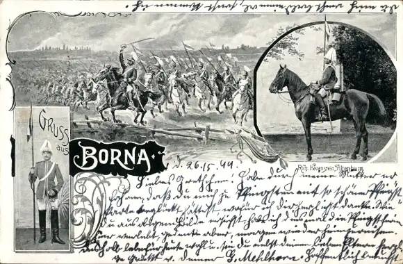 Ak Borna in Sachsen, Deutsche Soldaten in Uniformen, Reiter