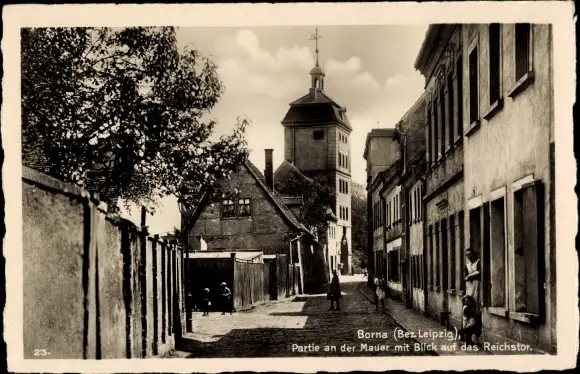 Ak Borna in Sachsen, Mauerpartie mit Blick auf Reichstor