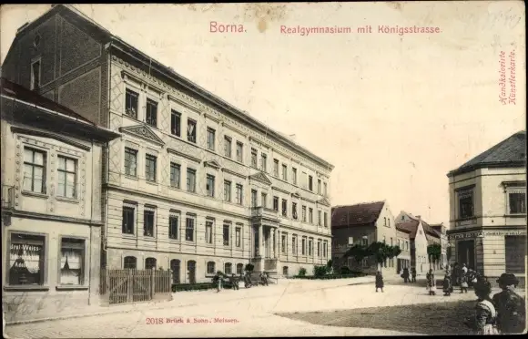 Ak Borna in Sachsen, Realgymnasium mit Königsstraße