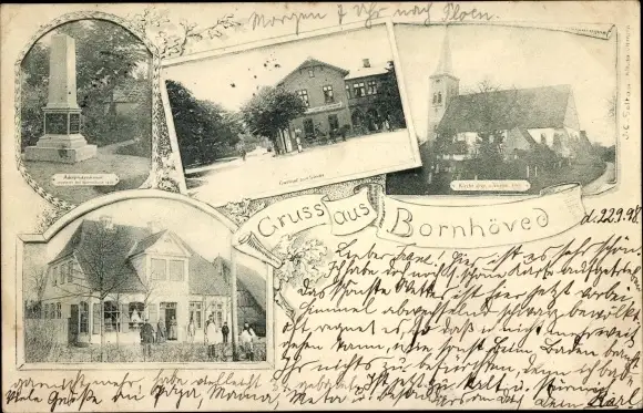 Ak Bornhöved in Holstein, Denkmal, Kirche, Gasthaus