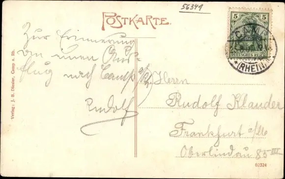 Ak Bornhofen am Rhein, Camp am Rhein, Gesamtansicht, Dampfer, Berg