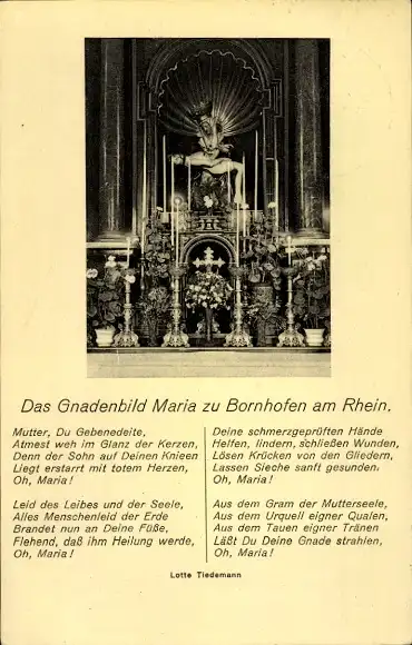 Ak Bornhofen am Rhein, Gnadenbild Maria, Liedtext Mutter, Du Gebenedeite, Lotte Tiedemann