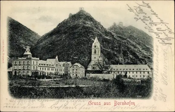 Ak Bornhofen am Rhein, Ortsansicht, Kirche