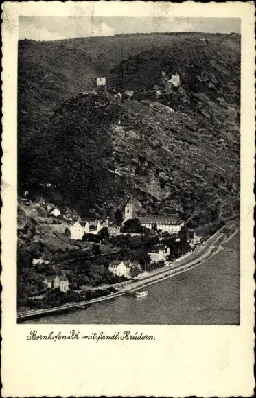 Ak Bornhofen am Rhein, mit feindlichen Brüdern, Panorama mit Burgen