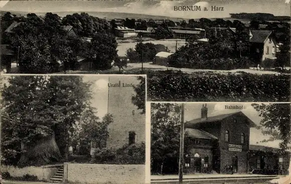Ak Bornum Bockenem am Harz, Gesamtansicht, Bahnhof, Uralte Linde