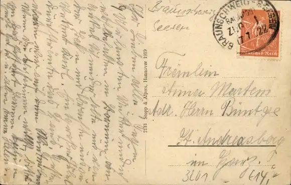 Zustand, siehe Scan, gelaufen, 1922- Bahnpoststempel Braunschweig Seesen Zug 1 - ca 14 cm X 9 cm